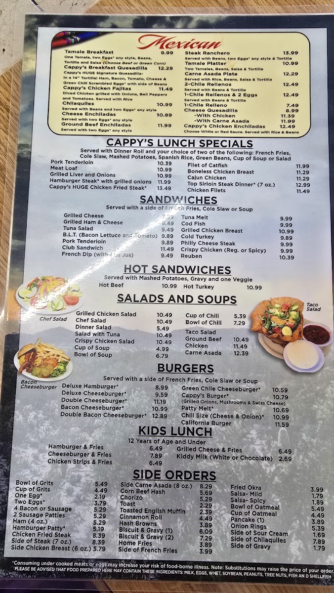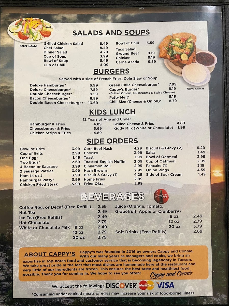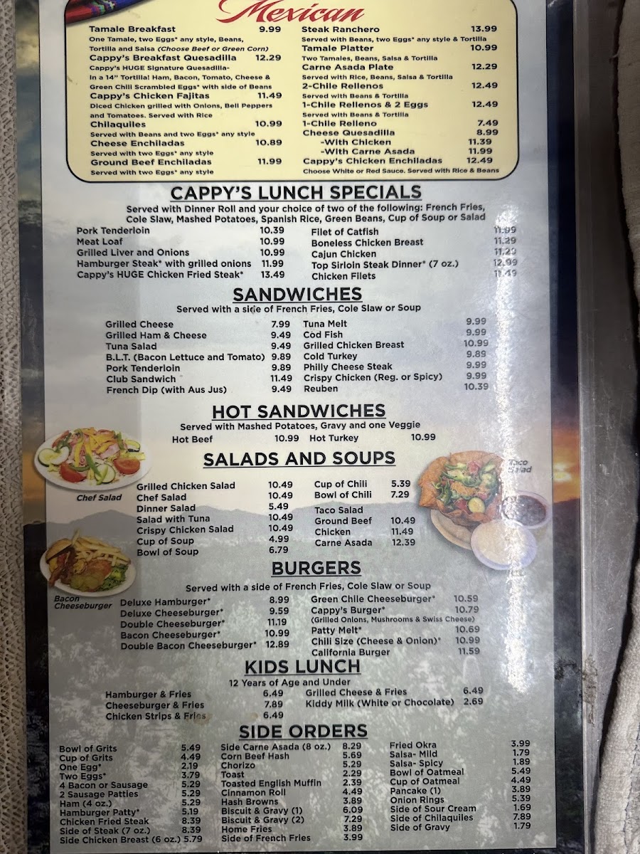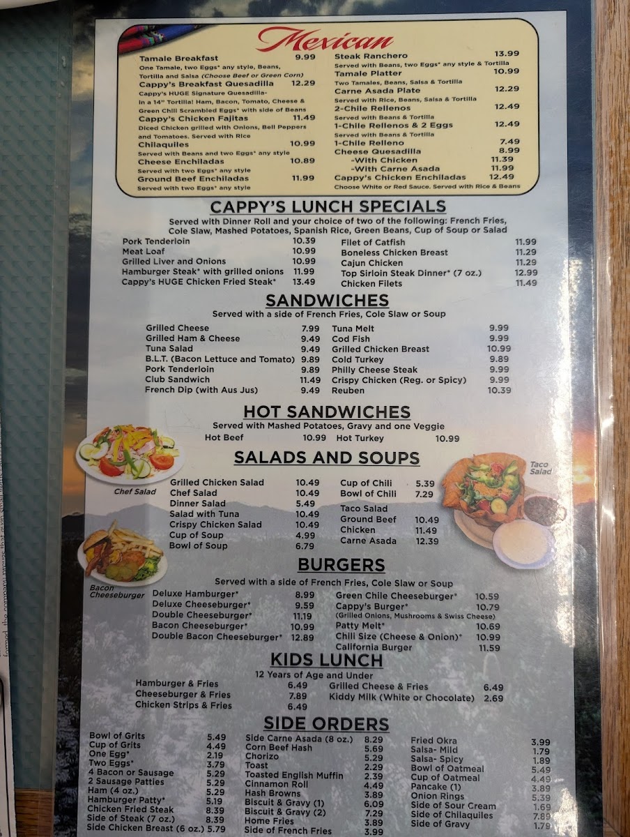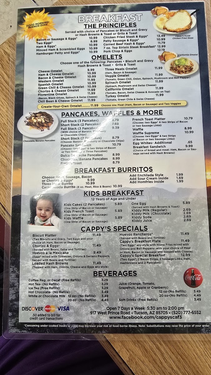 Welcome to Cappy's Breakfast Cafe, the hidden gem at 917 W Prince Rd, Tucson, AZ. This cozy breakfast spot offers a delightful range of classic and Mexican-inspired dishes that cater to diverse palates. The menu features hearty options such as the Cappy's Breakfast Plate and a variety of sandwiches, including a delicious Grilled Cheese Sandwich and Cold Roast Beef Sandwich.